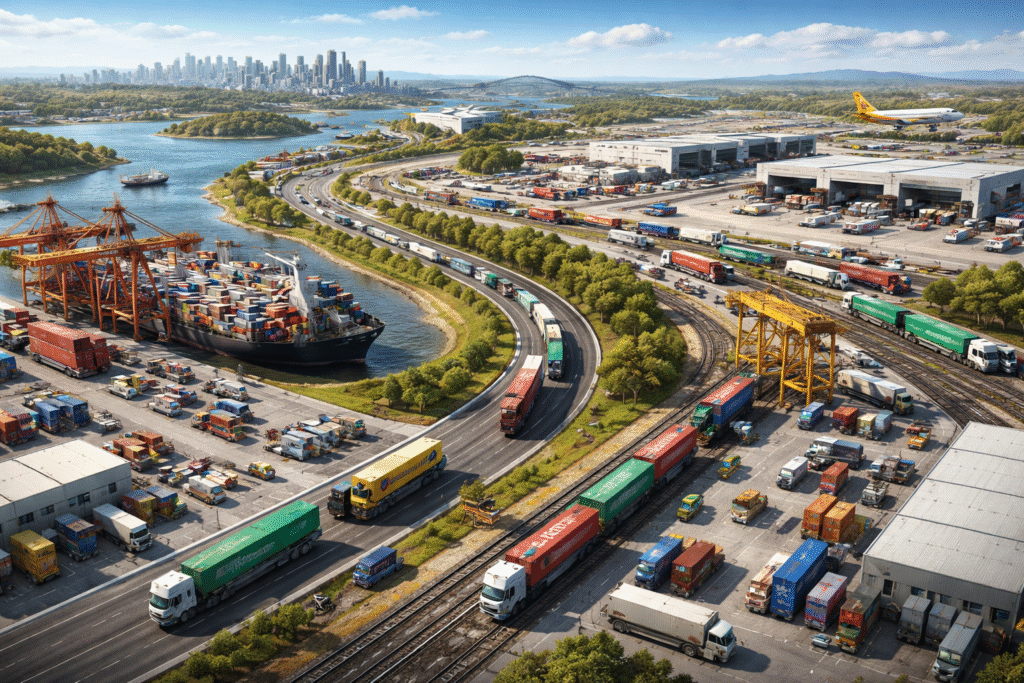 Freight movement in Australia is defined by distance and diversity. A shipment may travel from an inland farm to a regional packing shed, then to a port for export—or move from an Asian supplier to an Australian warehouse and finally to a suburban doorstep. Because of this complexity, logistics and transportation companies build competitive advantage through infrastructure positioning (near ports, airports, and major roads) and operational solutions that reduce delays, damage, and cost.